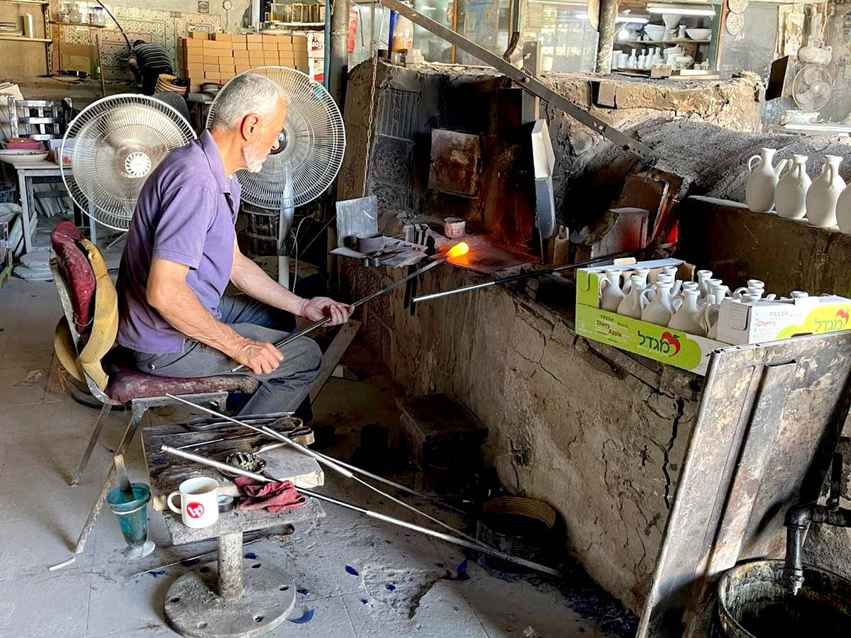 Center of Hebron Old City is a UNESCO site. On this tour, we will be visiting the Old City of Hebron (H1 & H2) and learn about the significance of the Tomb of the Patriarchs to the three Abrahamic religions. The tour includes a visit to the tomb (Known also as the Ibrahimi Mosque). You’ll also walk through the local souks and later visit a ceramic and glass factories to watch how they blow the glass to shape it and how they make the ceramic.